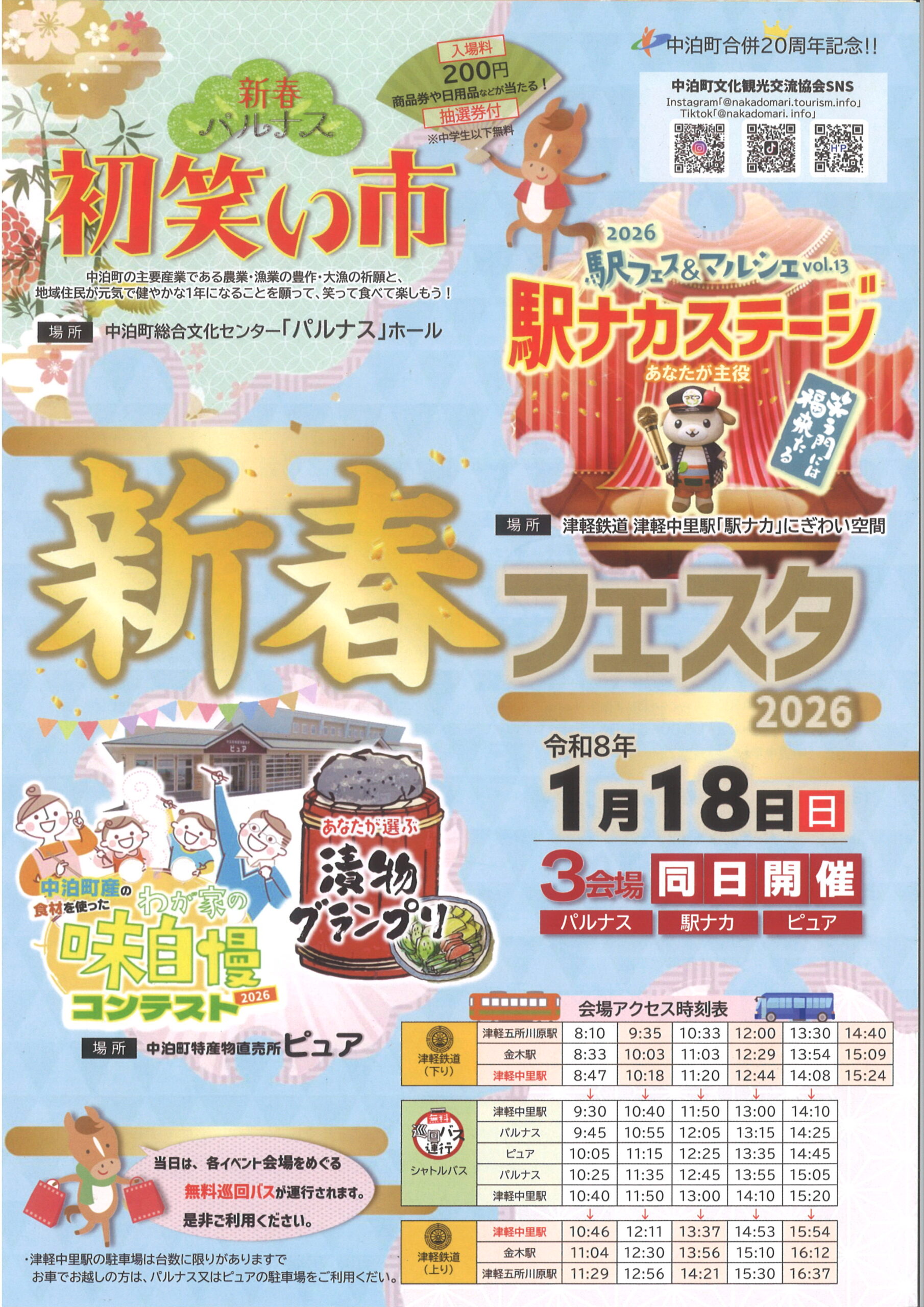 中泊町3会場(パルナス・駅ナカ・ピュア)同時開催!!