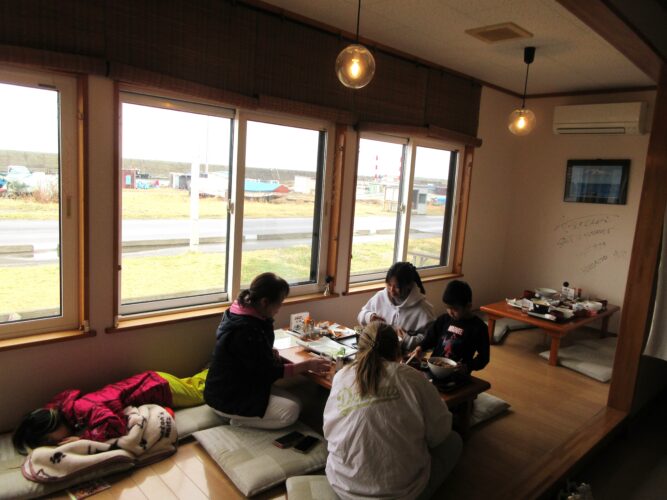 小上がりはテーブル席が3つ。地元のお客様が入れ替わり来ていました。