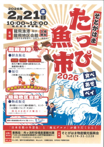場所の地図などは、外ヶ浜町HPの中からたっぴ魚市2026のイベントを検索してご覧ください。